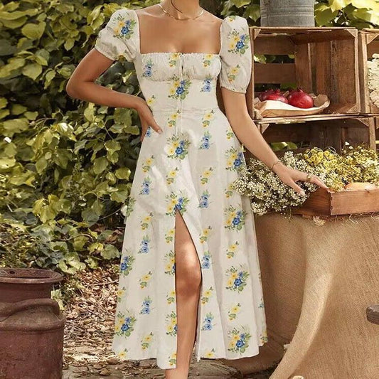 INKELIA | Robe Imprimée à Manches Bouffantes